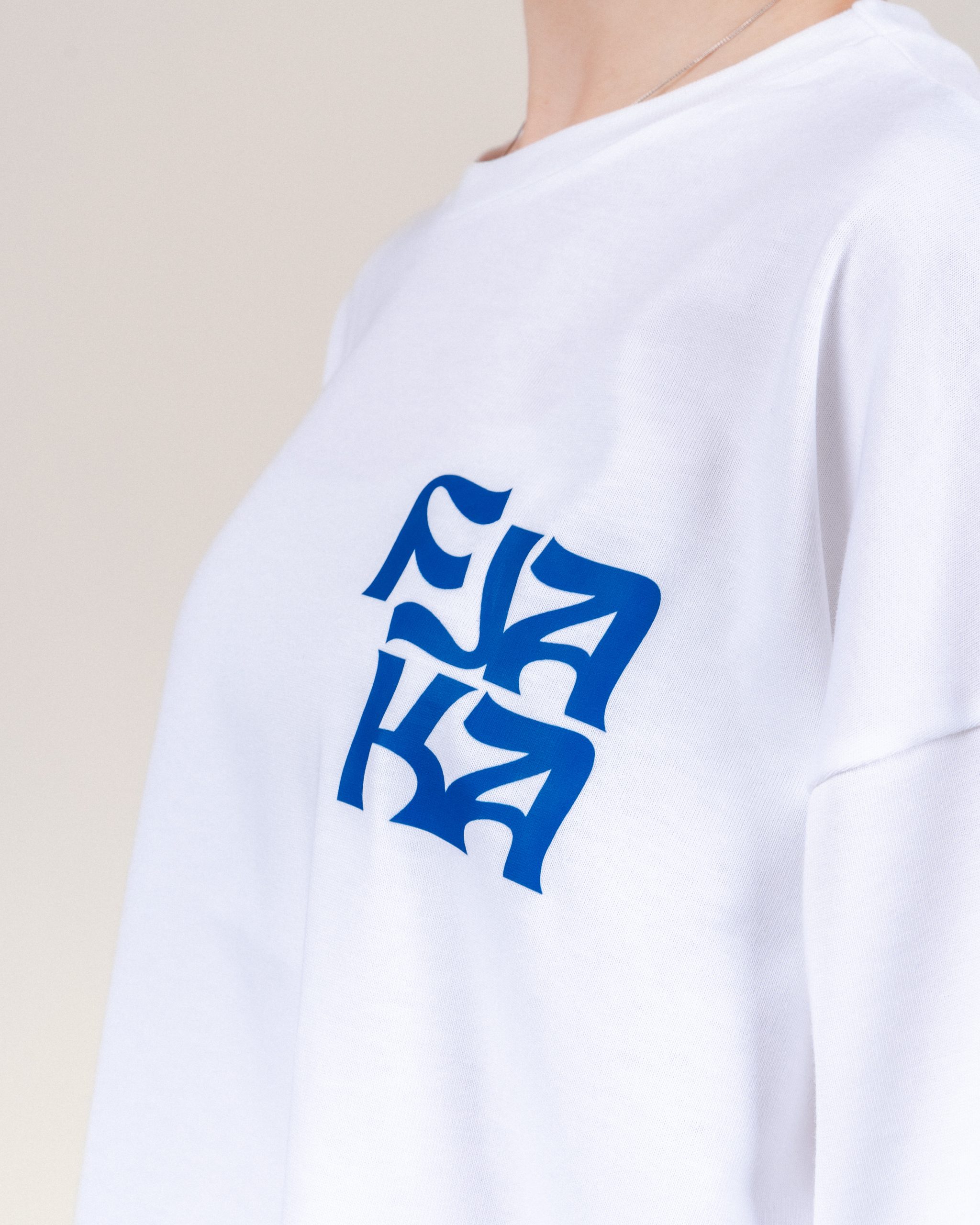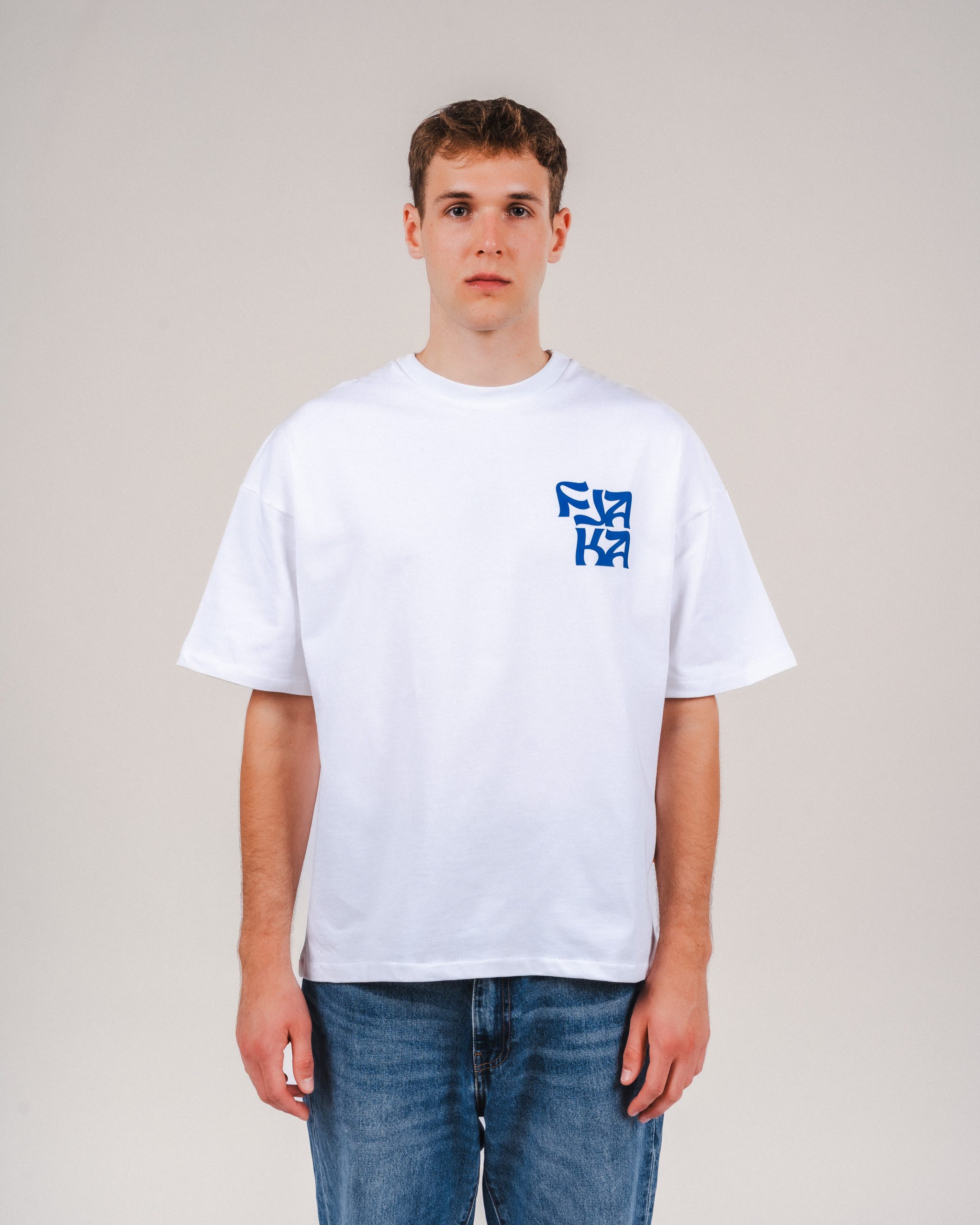 • Blue FJAKA logo chest print