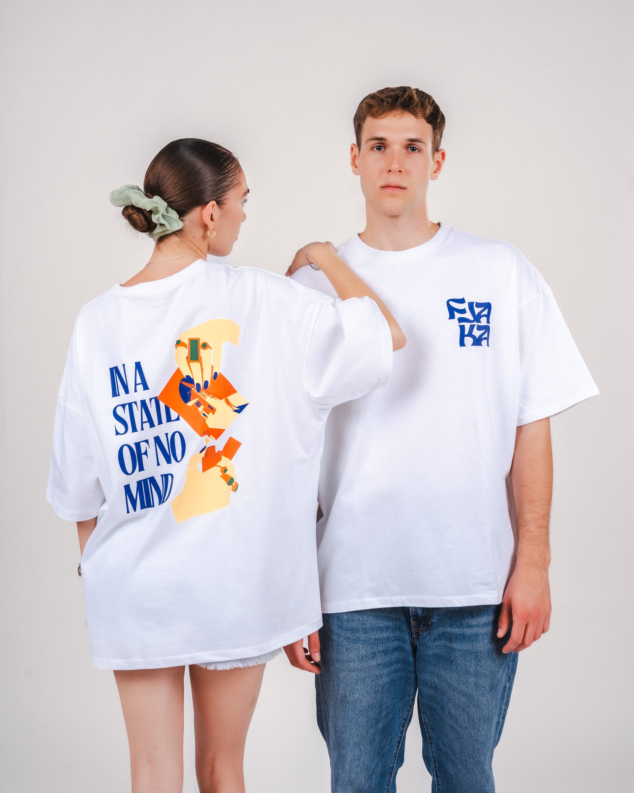 Following our event in Werner Villa, this unique white t-shirt is decorated with purple Fjaka logo on the front side. On the back we embodied In A State Of No Mind print together with design of Werner Villa poker card.
